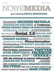 Całość zaskakuje różnorodnością. Teksty dotyczą marketingu politycznego, mediów społecznościowych, Twittera, telewizji, liderów opinii w sieci, komunikacji politycznej, kreatywności, dziennikarstwa, nowej narracji i wielu innych kwestii, prezentowanych w postaci zapisów debat, wywiadów, artykułów autorskich i recenzji książek. Właściwie „Nowe Media” sprawiają bardziej wrażenie książki, składającej się z 30 artykułów (choć na książkę zbyt krótkich, bo średnio 3-5 stronicowych, z wyjątkiem 14 stron Teresy Podemskiej-Abt) niż pisma podzielonego koncepcyjnie na działy, pogrupowane według przejrzystych reguł. Wydaje się, że Mistewicz świadomie zrywa z tradycyjnymi podziałami na rubryki, przyjmując układ swobodnego przepływu treści, w którym każdy tekst jest jednakowo ważny, i w zasadzie jeżeli łączą się one ze sobą, to w sposób przypadkowy (z wyjątkiem sekwencji „twitterowej” i „dziennikarskiej”). W tej pobieżnej recenzji (szersza ukaże się w przyszłym, jesiennym numerze „Forum Dziennikarzy”) skupię się na czterech tekstach napisanych przez dziennikarzy.