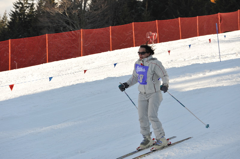 Panowie walczyli równie zaciekle w trzech grupach wiekowych. Kapitan Krzysztof Baranowski rozwinął tak mocno żagle ( i swoje umiejętności carwingowe), że nie udała mi się obrona tytułu mistrzowskiego z roku ubiegłego. Za to skutecznie odparłem atak Włodka Kalickiego (GW), któremu nie pomogły nowe, wspaniałe narty. Myślę jednak, że w przyszłym roku dołoży wszystkim! Zwycięstwo w pięknym stylu odniósł też Paweł Wroński („Gazeta Wyborcza”). Zawodników wspierał burmistrz Świeradowa-Zdroju, pan Roland Marciniak, który jako fan „Kaczki” wspaniale wywiązał się z roli konferansjera zawodów. Najgłośniej dopingował jadącego brawurowo Marka Przybylika („Szkło kontaktowe”) i Jurka Iwaszkiewicza („Viva!”) elegancko dającego sobie radę dzięki wypracowanemu przez lata słynnemu skrętowi Val Gardena. Niestety, nie wystarczyło to do pokonania pana Sobiesława Zasady (z szacunkiem, bo to nasz patron, ale też przyjaciel „Kaczki”), wspaniałego kierowcy-rajdowca, ale i pasjonata żeglarstwa. Stąd wziął się jego puchar specjalnie ufundowany dla Krzysia Baranowskiego. Iwaszce udało się wygrać z Kamilem Dąbrową (dyrektor I Programu Polskiego Radia), który zadebiutował w Mistrzostwach, podobnie jak Grzegorz Markowski (TVN24). Ten się jednak nie zachował – był najszybszy wśród panów. I wygrał.