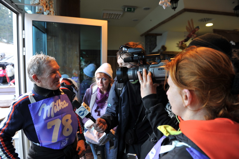 Dwie godziny później na Stoku Izerskim na starcie stanęli dorośli. Było wesoło, ale też nerwowo, bo trasa giganta ostra, twarda, wymagająca. Nadspodziewanie dobrze dały sobie z nią radę kobiety, i starsze i młodsze. Bo jak zwykle, zgodnie regulaminem Międzynarodowego Narciarskiego Klubu Dziennikarzy (SCIJ), start odbywał się w grupach wiekowych. Tym razem najlepszy czas (suma dwóch przejazdów) uzyskała Karolina Dzięciołowska (Muzeum Historii Żydów Polskich), córka znanego dziennikarza i działacz SDP Jerzego Dzięciołowskiego. Tylko minimalnie ustąpiła jej Kasia Ołdak (Canal +), prezesowska córka, serce (i komputer) Kaczkowskich spotkań. Dziennikarska sztafeta pokoleń? I o to chodzi!