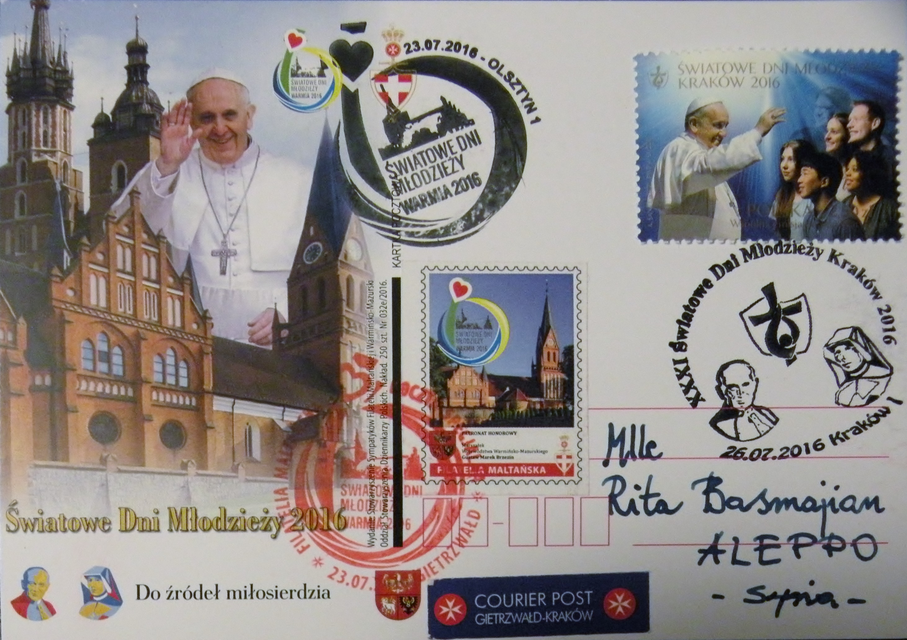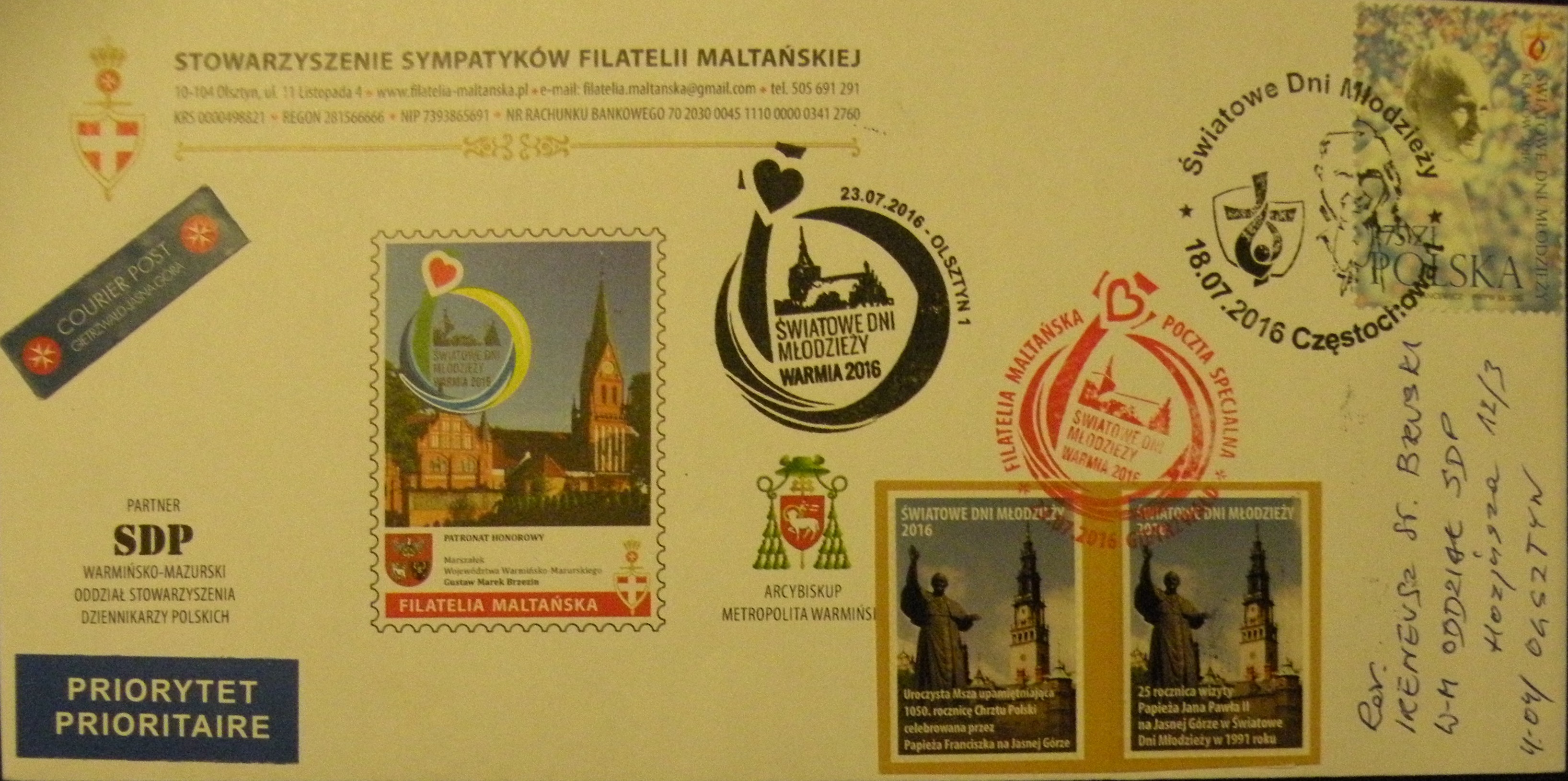 Światowe Dni Młodzieży dobiegają końca. Ostatnie chwile we wspólnocie pielgrzymów w Krakowie, i w tej szerszej, obejmującej cały świat za pomocą mediów. Ostanie słowa i gesty Papieża. Po tych dniach zostaną niezwykłe przeżycia, papieskie homilie oraz niezliczone artykuły, książki i opracowania. Dla tych, którzy osobiście wzięli udział pozostaną znajomości i przyjaźnie, i pamięć niezwykłych przeżyć zarówno na krakowskich Błoniach, na Franciszkańskiej 3, Kampusie Miłosierdzia w Brzegach i w tylu miejscach Polski, gdzie młodzi z całego świata trafili jeszcze przed Krakowem. Pozostanie również niewielka pamiątka, zwłaszcza dla młodych z Warmii i Mazur – karki pocztowe przygotowane przez Filatelię Maltańską i Stowarzyszenie Dziennikarzy Polskich.