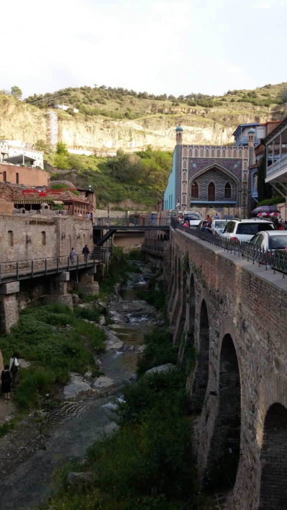 Mój pobyt w Gruzji rozpocząłem od stolicy. Tbilisi to zdecydowanie największe miasto kraju, w którym mieszka jedna trzecia jego ludności (ok. 1,115 mln, aglomeracja ok. 1,5 mln). Położone jest malowniczo w dolinie rzeki Kury (Mtkwari) i na otaczających ją zboczach Małego Kaukazu. Według legendy swe powstanie zawdzięcza jednemu z gruzińskich władców, który w tych rejonach polował z sokołami. Jeden z ptaków próbował pochwycić bażanta, po czym obydwa wpadły do gorących źródeł i ugotowały się w ukropie. Król postanowił założyć miasto w tak dogodnym miejscu. To właśnie od gorących źródeł, w które obfituje okolica, pochodzi nazwa Tbilisi (tbili – ciepły). Można się o tym przekonać zwiedzając łaźnie siarkowe, umiejscowione nad przepięknym kanionem (dzielnica Abanotubani). Spacerując wzdłuż płynącego nim źródła można zobaczyć wiszące nad przepaścią domy oraz wieńczący kanion wodospad. W powietrzu unosi się charakterystyczny zapach siarkowodoru. Kąpiel w siarkowej wodzie jest ponoć błogosławieństwem dla ciała i pomaga na różne schorzenia.