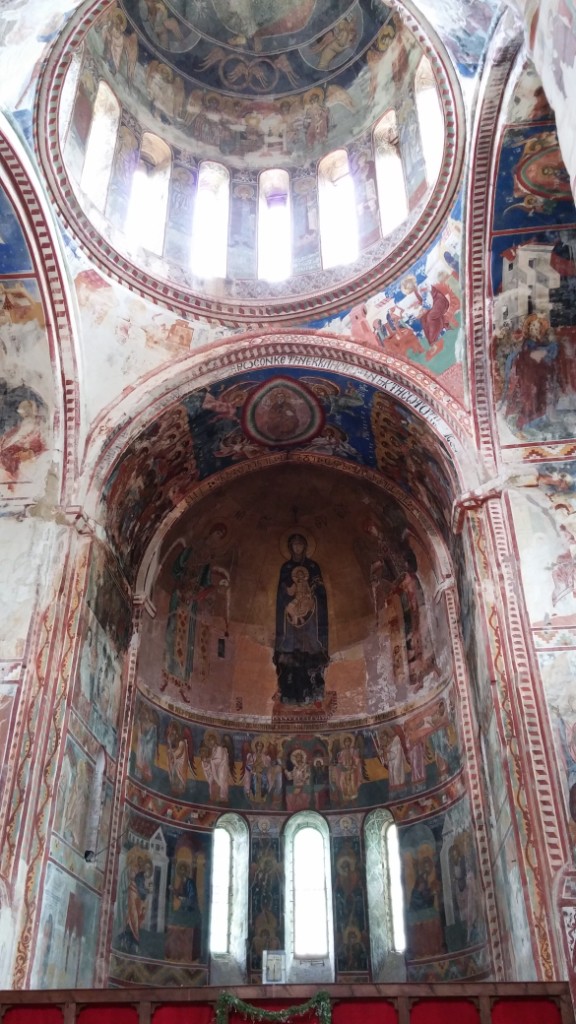 Z kolei najbardziej bogate wnętrza można zaobserwować w monastyrze Gelati. Ten wpisany na listę UNESCO obiekt zdobią przepiękne freski powstałe przed kilkoma wiekami. Przez długi okres czasu monastyr był jednym z głównych centrów życia kulturalnego Gruzji. Działała tutaj akademia. Niestety w 1923 r. klasztor padł ofiarą bolszewickich represji. Zakazane zostało sprawowanie kultu, a relikwie świętych Dawida i Konstantyna (męczenników za wiarę i ojczyznę) oraz większość własności monastyru została wywieziona do muzeum w Kutaisi. Na szczęście w 1954 r. ponownie pozwolono na odprawianie praktyk religijnych, a szczątki świętych powróciły na miejsce spoczynku.