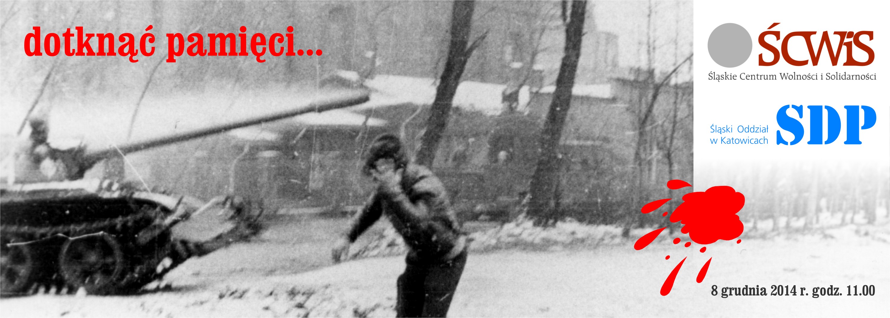 w Śląskim Centrum Wolności i Solidarności w Katowicach. Tematem spotkania będzie „Dotknąć pamięci”, czyli refleksje, dyskusja o pamięci i historii oraz spotkanie z górnikami – uczestnikami tragicznych wydarzeń Grudnia 1981 r.