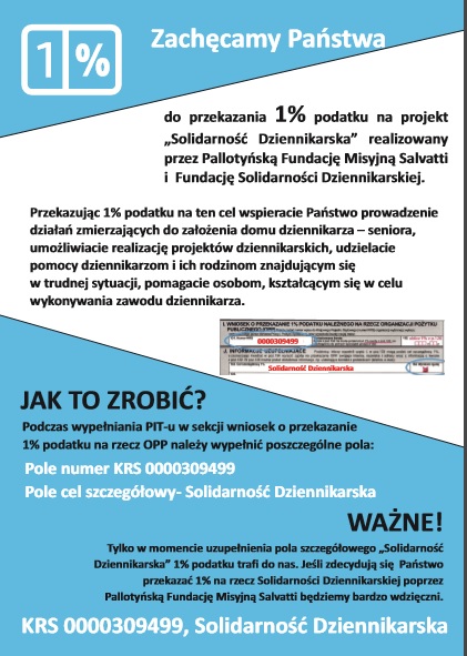 Zachęcamy Państwa do przekazania 1% podatku na projekt „Solidarność Dziennikarska”,