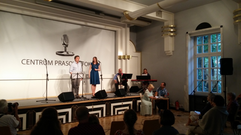 Niezwykle wzruszający koncert odbył się wczoraj w Domu Dziennikarza. Wokaliści Garwolińskiego Teatru Muzycznego Od Czapy śpiewali polskie piosenki emigracyjne przy akompaniamencie Marty Sobczak (instrumenty klawiszowe) oraz Juliana Czaporowskiego (akordeon).
