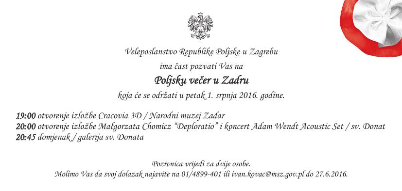 Początek dzisiejszego polskiego spotkania w Chorwacji o godz. 19, w kościele św. Donata. O godzinie 20 – wernisaż i koncert.