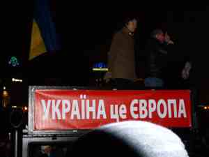 Ukraina chce do Europy – to oczywisty wniosek dla każdego, kto trafia na Majdan Niepodległości w piątkowy wieczór 22 listopada. Zaledwie dzień wcześniej rząd ukraiński ogłasza, że nie podpisze układu stowarzyszeniowego z Unią Europejską. Porozumienie negocjowane było od wielu lat i w zasadzie pozostała jedna nierozstrzygnięta przeszkoda – umożliwienie wyjazdu Julii Tymoszenko na leczenie za granicę. Wszystko zostało dopięte przez lata negocjacji i kiedy finał jest tuż za progiem następuje kompletna zmiana stanowiska Ukrainy. Ludzie na Majdanie w piątkowy wieczór nie mają wątpliwości, że spowodował ją nacisk Rosji i szantaż ekonomiczny. Dlatego Prezydent Janukowycz musiał odbyć swoją pielgrzymkę do Canossy – w wersji wschodnioeuropejskiej ulokowanej w pobliżu Moskwy. Na Majdanie powtarza się też, że to, co tam usłyszał to nie tylko groźba ukarania Ukrainy zamknięciem rynku rosyjskiego na import ukraińskich wyrobów, ale też obietnica wypłaty sporej sumy. Wszyscy na Majdanie są zgodni co do sumy i terminu wpłaty – 20 miliardów dolarów ma wpłynąć do 28 listopada. Rozbieżności wersji krążących po Majdanie dotyczą tego, czy te pieniądze mają zasilić pusta kasę państwa, fundusz wyborczy Partii Regionów, czy może prywatne konto samego Janukowycza? A może proporcjonalnie wszystkie trzy rachunki? Na Ukrainie plotki zwykle zawierają więcej prawdy niż gdzie indziej. Już dwa dni później dokładnie o tej sumie publicznie mówi jeden z liderów opozycyjnej Batkiwszczyny, Arsenij Jacyniuk. Piątek to wciąż początki protestów, pomarańczowa rewolucja to jeszcze nie jest, nie ma namiotów i mieszkających w nich demonstrantów, ale jest już kilkaset osób słuchających przemówień przeplatanych występami artystów, a Majdan Niepodległości zaczyna żyć swoim nocnym rytmem. Spontanicznie organizowane jest zaopatrzenie. Ludzie przynoszą co kto może, wydawane są gorące napoje, kanapki każdy robi sobie sam na zaimprowizowanym bufecie. Wszystko to potrzebne tym bardziej, że pogoda zaczyna przypominać, że jest późna jesień – pada deszcz i robi się zimno. Dominuje entuzjazm i przekonanie, że Ukraina jest częścią Europy, a każdy, kto trafia na Majdan ma poczucie, że to jest miejsce, gdzie tworzy się historia.