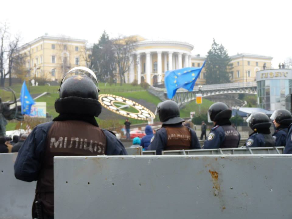 Po drodze do siedziby Ukraińskiego Stowarzyszenia, która znajduje się w centralnej część reprezentacyjnej ulicy Kijowa – na Chreszczatiku przechodzę przez Majdan. Jest sobotni poranek. Setki demonstrantów wciąż na posterunku. Liczba zmobilizowanych milicjantów pokazuje, że władze potraktowały poważnie zapowiedź ściągnięcia stu tysięcy demonstrantów na wiec w niedzielę.