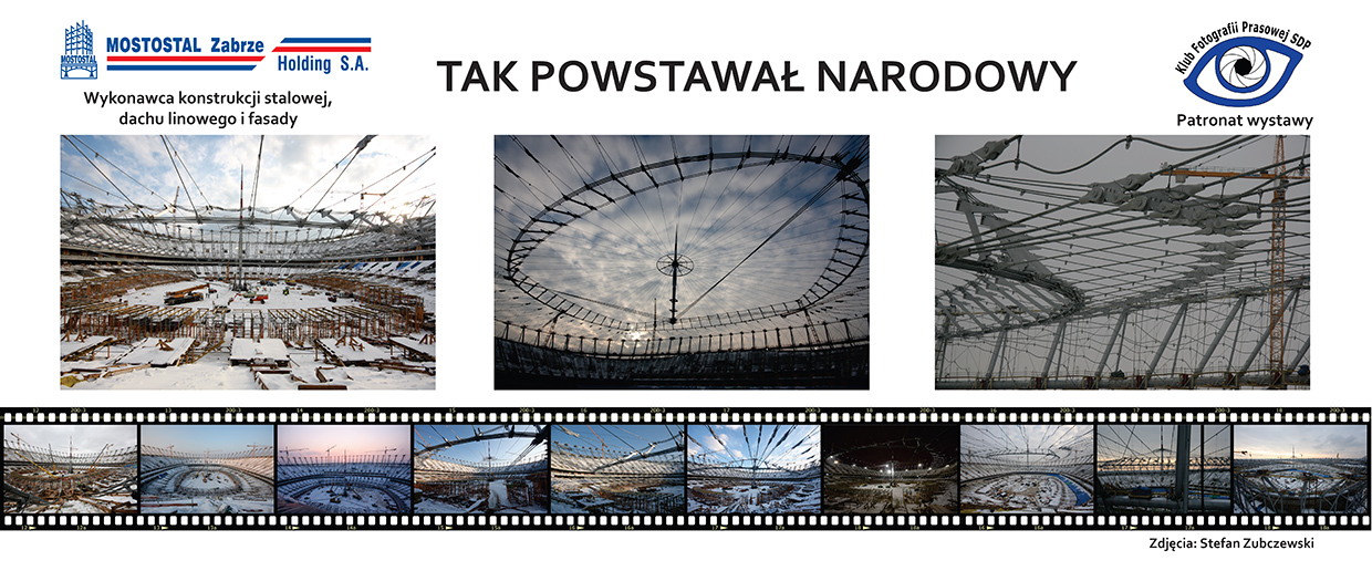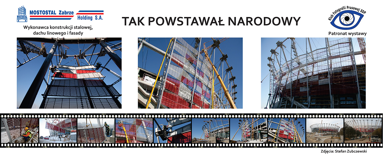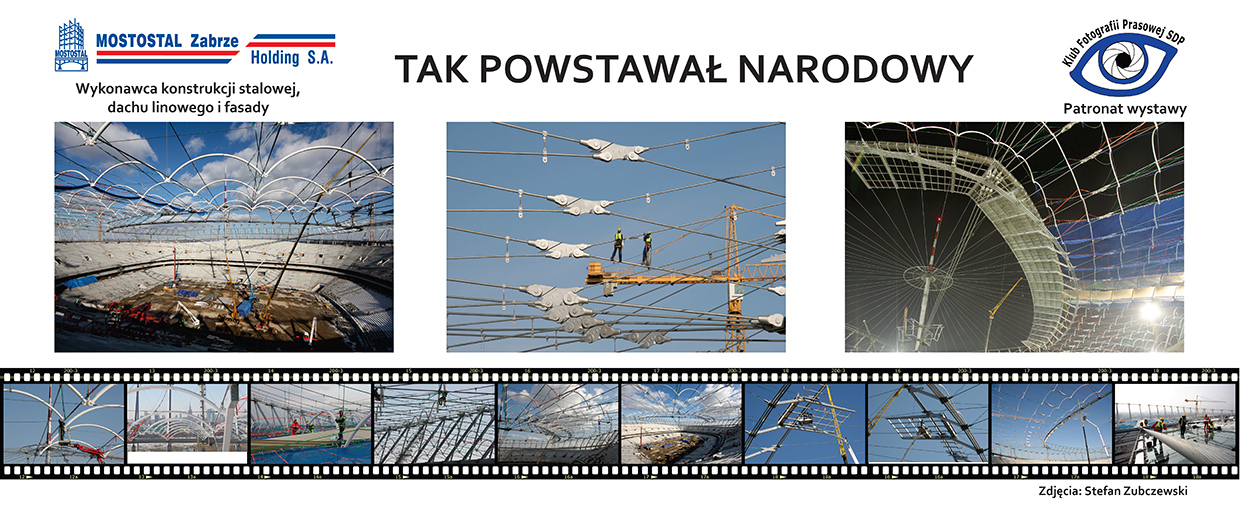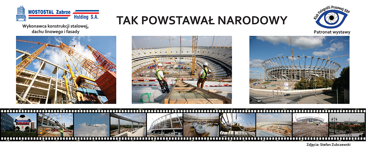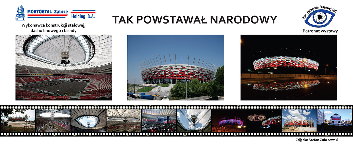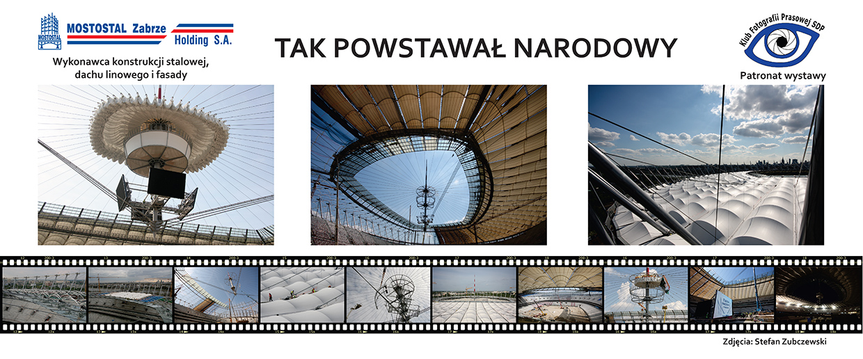 Nasz kolega – Stefan Zubczewski, wieloletni prezes Klubu Fotografii Prasowej SDP - przez 400 dni był zatrudniony przez Mostostal Zabrze jako dokumentalista budowy Stadionu Narodowego. Głównie interesował się konstrukcjami stalowymi, dachem linowym oraz fasadą. Efektem pracy naszego kolegi jest wystawa, która od poniedziałku (4 czerwca) zawisła na płocie SDP przed Domem Dziennikarza przy ul. Foksal 3/5. Do oglądania jej serdecznie zapraszamy.
