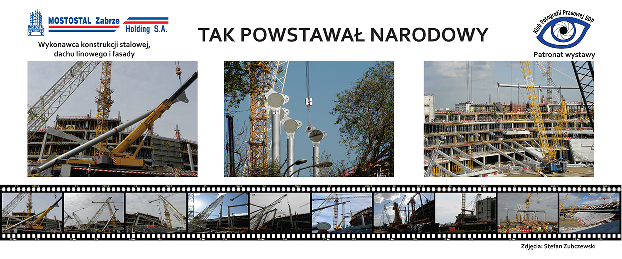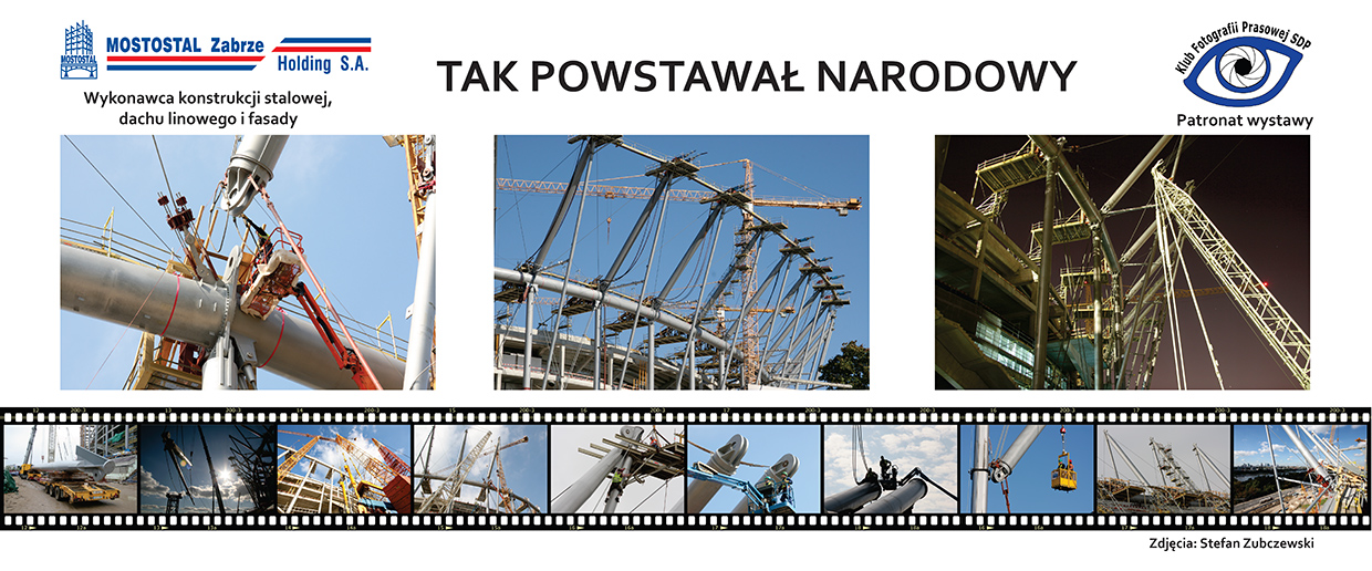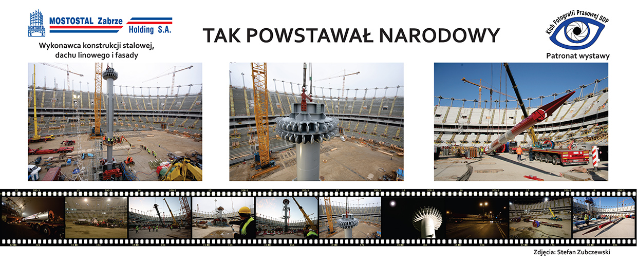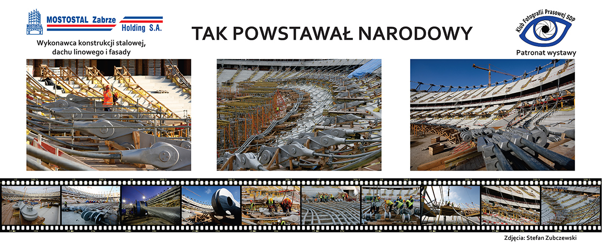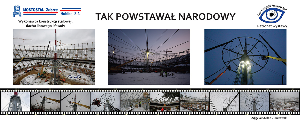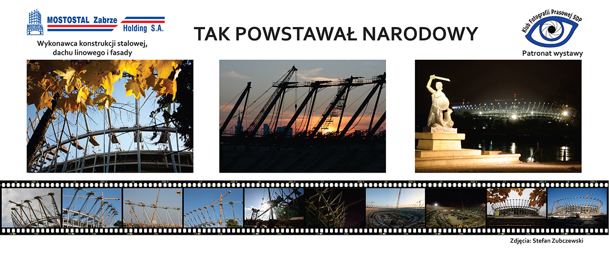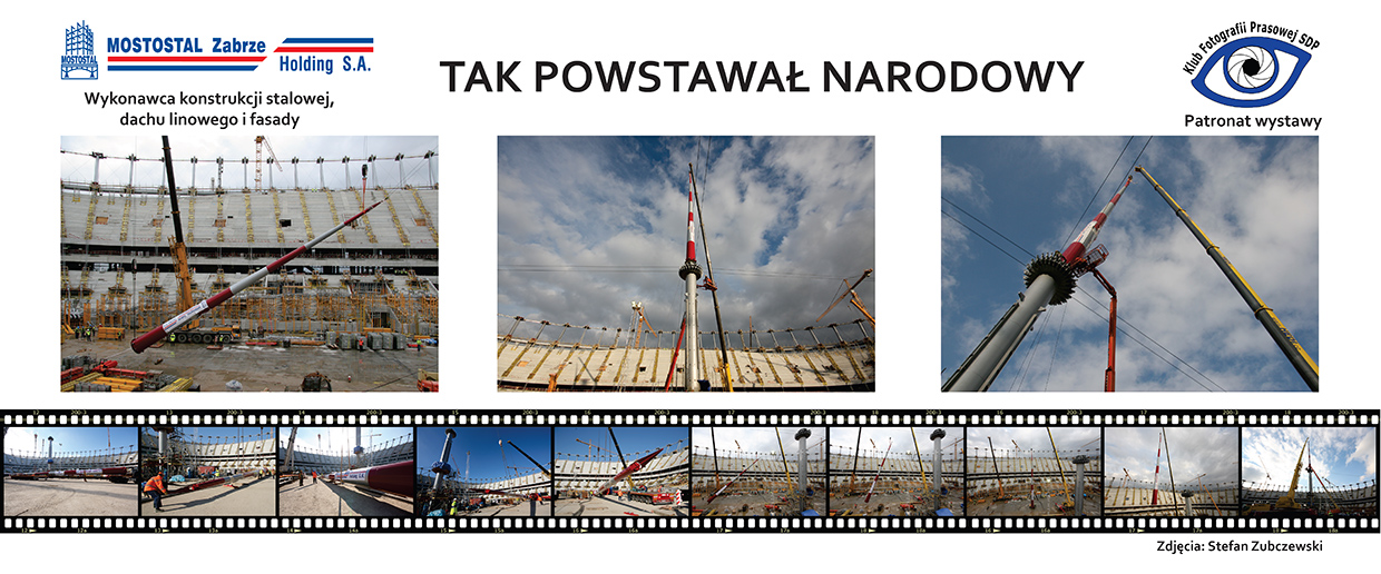 Nasz kolega – Stefan Zubczewski, wieloletni prezes Klubu Fotografii Prasowej SDP - przez 400 dni był zatrudniony przez Mostostal Zabrze jako dokumentalista budowy Stadionu Narodowego. Głównie interesował się konstrukcjami stalowymi, dachem linowym oraz fasadą. Efektem pracy naszego kolegi jest wystawa, która od poniedziałku (4 czerwca) zawisła na płocie SDP przed Domem Dziennikarza przy ul. Foksal 3/5. Do oglądania jej serdecznie zapraszamy.