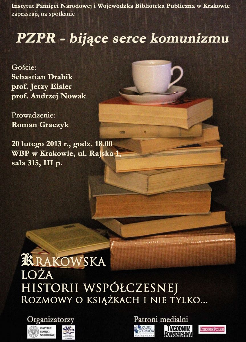 Dlatego też IPN i Wojewódzka Biblioteka Publiczna w Krakowie zapraszają na spotkanie, na którym uczestnicy dyskutować będą jak PZPR rządziła, kto rządził w jej imieniu i jakie były wewnętrzne reguły tej machiny władzy.