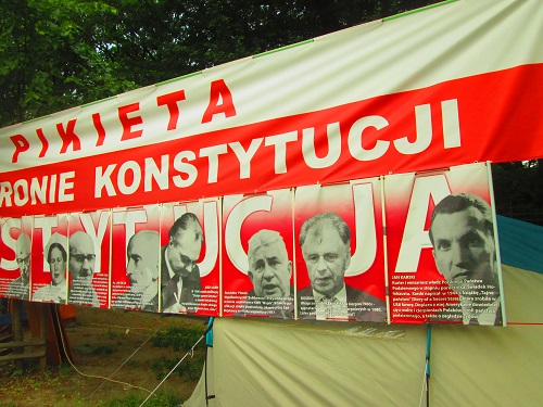 Ale bezwzględne draństwo, które należy wytępić objawia się inaczej. Oto między plakatami KOD-owskimi umieszczono portrety takich ludzi jak Jan Karski, Bogdan Lis, Jerzy Łojek, ks. Jan Zieja, Ryszard Siwiec i jeszcze wielu innych. Oczywiście nikt ich o zgodę nie pytał. Bohaterowie naszej historii w większości już nie żyją – nie mogą się wiec bronić. Na pewno ich rodziny też nie są zainteresowane KOD-owskimi protestami. Wiszą wiec te zdjęcia od 3 miesięcy.