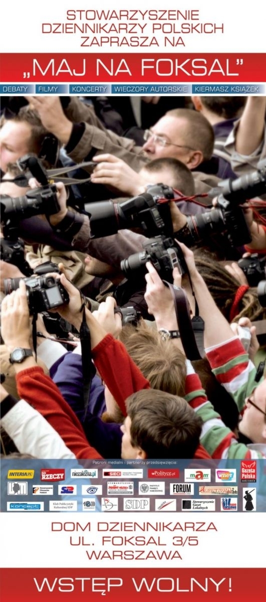 To zapowiedź tylko niektórych z całej palety wydarzeń majowych. Na wszystkie zapraszamy do Centrum Prasowego Foksal, działającego na co dzień jako profesjonalne miejsce konferencji prasowych i spotkań biznesowych, wstęp oczywiście wolny. Projekt dofinansowano ze środków Ministra Kultury i Dziedzictwa Narodowego.
